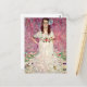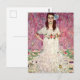 Postcard featuring Gustav Klimt’s portrait Mada Primavesi (1912). A girl in a white dress with flowers stands confidently in front of a purple background. A wonderful gift for fans of Art Nouveau and Austrian art!
