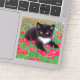 Sticker featuring a Gustav Klimt tuxedo cat! This adorable black and white kitty sits in a field of red, blue, white, and orange flowers. An awesome gift for cat lovers and Austrian art enthusiasts!