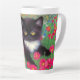Latte Mug featuring a Gustav Klimt tuxedo cat! This adorable black and white kitty sits in a field of red, blue, white, and orange flowers. An awesome gift for cat lovers and Austrian art enthusiasts!