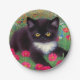 Paper Plates featuring a Gustav Klimt tuxedo cat! This adorable black and white kitty sits in a field of red, blue, white, and orange flowers. An awesome gift for cat lovers and Austrian art enthusiasts!