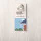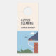 Door Hanger with an illustration of a roof and gutter of a house and some fall leaves, on behind a blue sky, with a cloud. On the back, there is a list of services and contact information. It could be used for small business such as roof and gutter cleaning or repair, handyman, pressure washing service, etc.