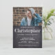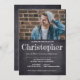 Graduation is a wonderful thing to celebrate. Congratulations on this achievement. Personalise this modern design using the classic chalkboard (hint of the classroom), with your own photo of the graduate, their name and other party information.