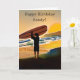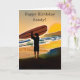 Guy on Beach with Surf Board at Sunset Card