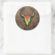 Guyana Flag Bull Skull on Wood Effect Classic Round Sticker
