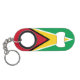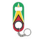 Guyana Flag Red Green Yellow Black White Patriotic Keychain Bottle Opener with the Guyana flag in Fire Engine Red, Cyber Yellow, Green Pigment, Black and White colours printed on the front and back side of the bottle opener. Colours are combined in a way that gives the best flag representation on a small space available. Guyana Keychain Bottle Opener is the perfect gift for the Guyanese proud of their heritage.