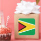The Guyanese flag is a green field with a triangle over a triangle on the left. The used colours in the flag are red, green, yellow, white, black. The proportion of the Guyanese flag is 3:5. The Flag of Guyana was adopted in 1966.