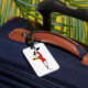 Beautiful luggage tag showcasing woman with stylish Guyana Flag purse.