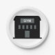 A gym building all in black with the word gym on it. This design looks really effective on these Paper Plates