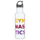 Take this bottle to the gym with you. It has the word gymnastics in a colourful patterned text. you customise the name on the side. Very cute for any gymnast.
