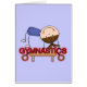 A brunette haired stick figure girl in a purple leotard does a routine on the balance beam on GYMNASTICS T-shirts, hoodies, tank tops, cards, mugs, hats, stickers, tote bags, and other gymnast clothing and gift items.