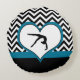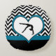 A gymnast in a heart over a black and white chevron background.... This round pillow is perfect for any gymnast.