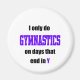 Really...I'm not in the gym THAT much...design says: I only do GYMNASTICS on days that end in Y. *Please note: we offer this design in two colours; one that works for light colours and one for dark colours. If you create your own shirt, please make sure you choose the correct colour design.