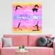 Gymnastics Events Stretched Canvas Wall Art Print for gymnast with her name on it! Shows gymnast silhouettes of all 4 gymnastics events for girls. Vault, Uneven Bars, Balance Beam and Floor!