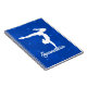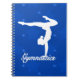 Fun gymnastic design featuring a tumbling girl with her hands planted on the word GYMNASTICS and light blue stars on a dark blue background.