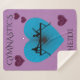 Gymnastics purple & blue Sherpa blanket with gymnast & purple hearts. Personalised name.