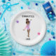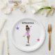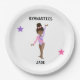GYMNASTICS PARTY PAPER PLATES WITH PERSONALIZED NAME FOR GIRLS.