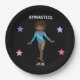 GYMNASTICS PARTY PAPER PLATES WITH PERSONALIZED NAME FOR GIRLS.