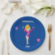 GYMNASTICS PARTY PAPER PLATES WITH PERSONALIZED NAME FOR GIRLS.