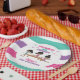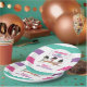 Flip, Tumble and Play! Gymnastics birthday party plates in pink, purple and turquoise.