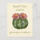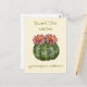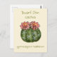 Dwarf chin cactus watercolor postcard on a postcard. Also called spider cactus, Latin name gymnocalycium baldianum.