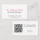 Simple Minimalist Obstetrician-Gynaecologists Doctor card. The template has space for basic information like name, website, phone, fax, location and website or appointment booking QR code. Click on "personalise this template" for product customisation.