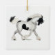 This ornament with a a trotting gypsy horse who has black and white pinto markings can be hung in your car, home, or barn as a charm for equestrians and horse lovers. A great gift for those who own or work with gypsy horses or for horse overs and animal lovers in general. Also available with customisable text and messages.
