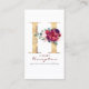H Monogram Burgundy Red Flowers and Faux Gold Business Card