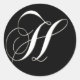 H monogram with a black background, white script initial and silver border. Perfect sticker for your wedding envelopes, gift bags, or other decor for your elegant wedding.