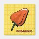 An orange habanero chilli pepper is decorated with patterns inspired by designs from Cuban concrete tile and sits on a yellow background with a smaller version of the same pattern and a script label in the corner. This very spicy pepper was originally cultivated in the Yucatan Peninsula, but gets its name from Havana in Cuba due to the heavy trading through that city.