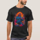 I give wanted to give this a 4 instead of a 5 because these Basic DARK T0shirts run unexpectedly SLIM or Narrow. Which is great if you do not have a potbelly, but I have a paunch. It isn't the shirt's fault that I've got a beer belly. The design and shirt itself is a quality cotton shirt. The color is more of a deep purple, but still a very pretty color. The Basic DARK T-shirts run a bit SLIMMER than the Basic Ts. The neck is a fraction narrower (or seems to be narrower) also. I'm a paunchy middle-aged woman and my neck is 12 inches (31cm) thick and the neckline fell about the same as in the photo of the man, and I had the desire to tug it a bit. So if you're a thick necked man or like loose shirts, be aware these are slimmer shirts. Once I get rid of my lockdown paunch it'll look great. The shirt washed well in cold water with no apparent bleeding. We don't have a dryer, so it hung dry. Did not shrink. Love the colors and the design. The design looks smaller on my shirt than it does on the model on-line. But still, it looks good on the shirt. The printing looks as it does on the model, just the size seems fractionally smaller. Washed garment in cold water, hung dry and design appeared unaffected.