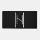 Hagalaz black and white desk mat. Hagalaz Black and White is a Germanic design created by Anna M. Asbury and consists of a black background with a white and black Hagalaz Rune in the center. A white bar is on both sides etched with the Elder Futhark Runes.
