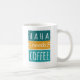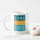 Haha Needs Coffee Mug. This cute coffee mug makes the perfect gift for any mother whose children call her Haha instead of Mum. (Haha means mother or mum in Japanese.) This funny coffee mug says "Haha needs coffee." It has a white background with teal / turquoise / aqua and yellow graphics.