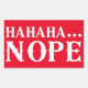 HAHAHA... NOPE funny quote Rectangular Sticker