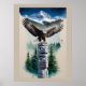 About "Haida Pride" - A powerful scene featuring a proud Bald Eagle, a sacred animal in First Nations culture, alighting upon a stylised Haida totem pole with a magnificent mountain rising behind.