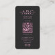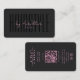 Modern Minimal Black Pink Hair Stylist Braids Salon Monogram business card with QR code and facebook and instagram icon