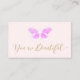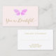 Elegant signature calligraphy script in the words "you are beautiful" on pink background with artistic faucx pink glitter butterfly drawing.