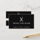 A professional appointment card for a hair salon, hair stylist or hairdresser. Featuring the salon name and main services on the front of the card. And the appointment date, time, cancellation policy and contact details on the back. A modern, simple and minimalist design with a scissors graphic. This appointment card is in a black colorway. The text templates can be easily personalised.