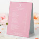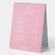 A professional table tent sign for a hair salon, hair stylist or hairdresser. Perfect for displaying a service menu or price list. It features a modern and simple design with a scissors graphic. This sign is in a pink colorway. The text templates can be easily customised to suit the requirements of your business. The information is displayed on the front and back of the table tent sign.
