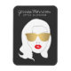 Coordinates with the Hair Salon, Style Blogger, Beauty Girl III Business Card Template by 1201AM. A bold, black and white illustration of a girl with red lips and gold sunglasses becomes an eye-catching mascot on this stylish magnet for hair salons and stylists. Illustration and design © 1201AM CREATIVE