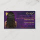 Customise this hair salon business card that doubles as an appointment card. Displays image of hair, salon comb, salon shears (scissors) and blow dryer. Colours are purple, gold accented with orange. Design your own cards here.