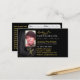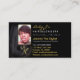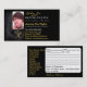 Add your own photo here to customise this hair salon business card that doubles as an appointment card. Displays image of hair, salon comb, salon shears (scissors). Colours are black, white accented with gold text. Design your own cards here.