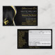 Customise this hair salon business card that doubles as an appointment card. Displays image of hair, salon comb, salon shears (scissors) and blow dryer. Colours are black, white accented with gold text. Design your own cards here.