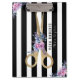 Hair Stylist Glitter Scissor Striped floral Clipboard