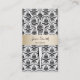 Hair Stylist Gold Striped Black Damask Appointment Card