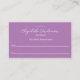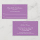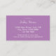 This lavender appointment card has a line of white handwritten-style script for your name on the front. Additional text for your title is available below the script. The are two lines to write the date and time of the client's next appointment. The back has lines of display text for your salon name, address, phone number, and a custom message. All text can be edited or deleted.