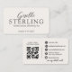 Professional business card designed for hair stylists using a soft, neutral color palette. The layout includes a QR code to share online information while keeping the design clean and easy to read. Suitable for salon professionals, independent stylists, and beauty service providers. Fully customizable text and QR destination with a print-ready layout.