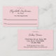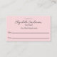 This pale pink appointment card has a line of black handwritten-style script for your name on the front. Additional text for your title is available below the script. The are two lines to write the date and time of the client's next appointment. The back has lines of display text for your salon name, address, phone number, and a custom message. All text can be edited or deleted.