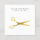 A minimalist black and gold hair stylist scissors design showcasing your own QR code, social media handle and text. This elegant business card is ideal for all types of hair stylists, barbers, hairdressers etc. A simple and professional way to promote your business. Personalise your details to create your own unique business card.