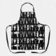 Black and White Hair Dresser apron showing tools of the trade like a comb, blow dryer, straighteners and hair pins