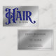 Hair by Typography Business Card. Blue on Silver Steel makeing it rough and modern.